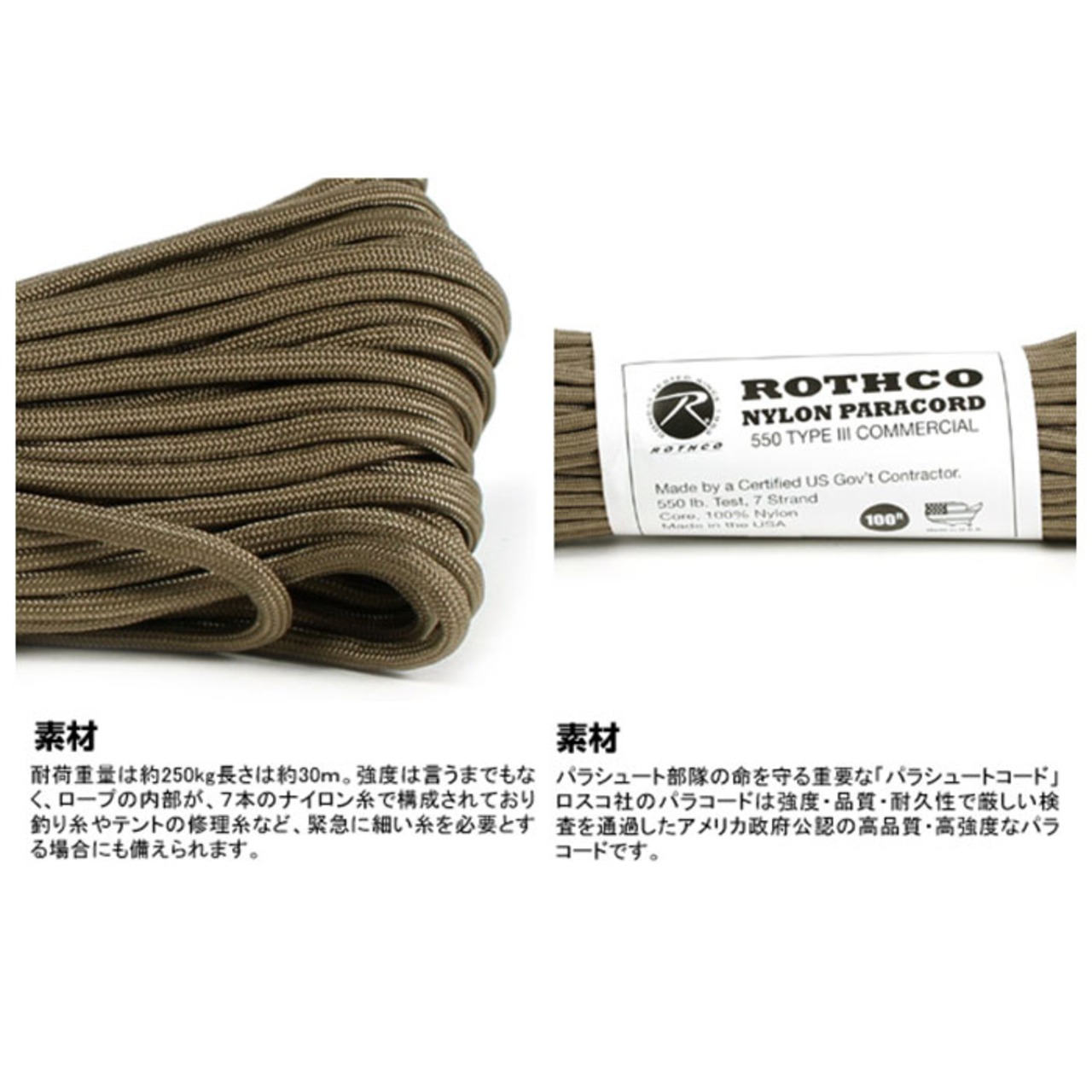 ロスコ ROTHCO 550LB PARACORD 同色2本セット