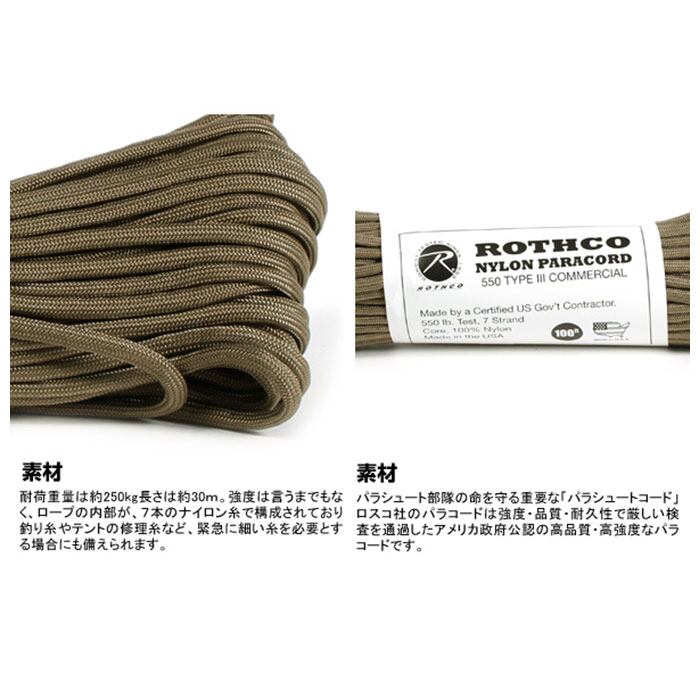パラコード 2本セット 通販 ロスコ ROTHCO ナイロン 100フィート 約 30m ロープ タープ キャンプ テント おしゃれ アクセサリー 綱 縄 紐 靴紐 靴ひも シューレース 強度 耐久性 スポーツ 災害 防災 サバイバル パラシュ