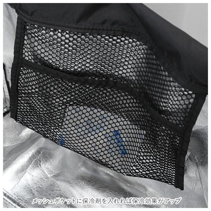 ・内側に保冷素材を使用。メッシュポケットに保冷剤を入れれば保冷効果がアップ。