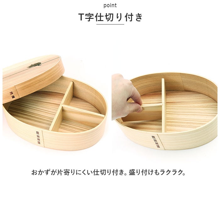 ・天然木の素地を使用しており、木の調湿作用でご飯がベチャつかない!通気性が良く、梅雨の時期や夏場でもお弁当が傷みにくいのがポイント。