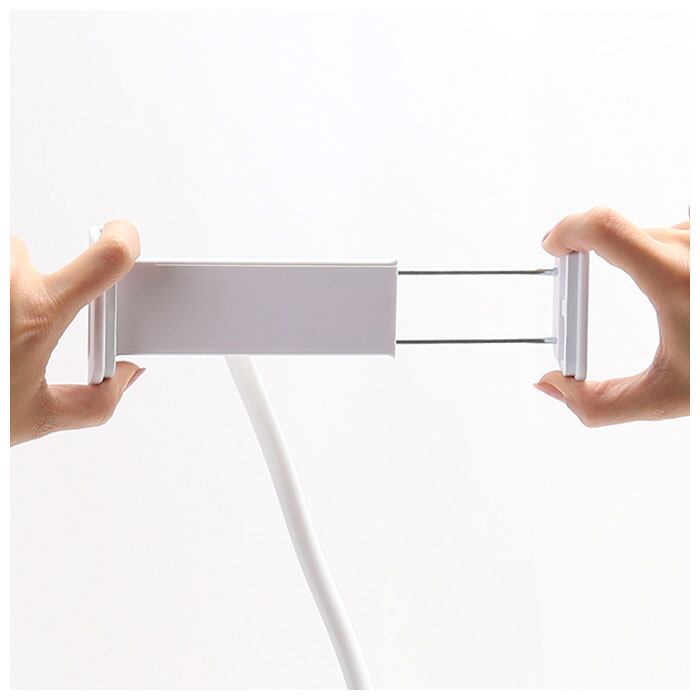 ・また、ホルダー両サイドから充電ケーブルやイヤフォンケーブルが取り付けられるため、充電しながらの動画視聴や、音楽鑑賞もラクラク楽しめる。