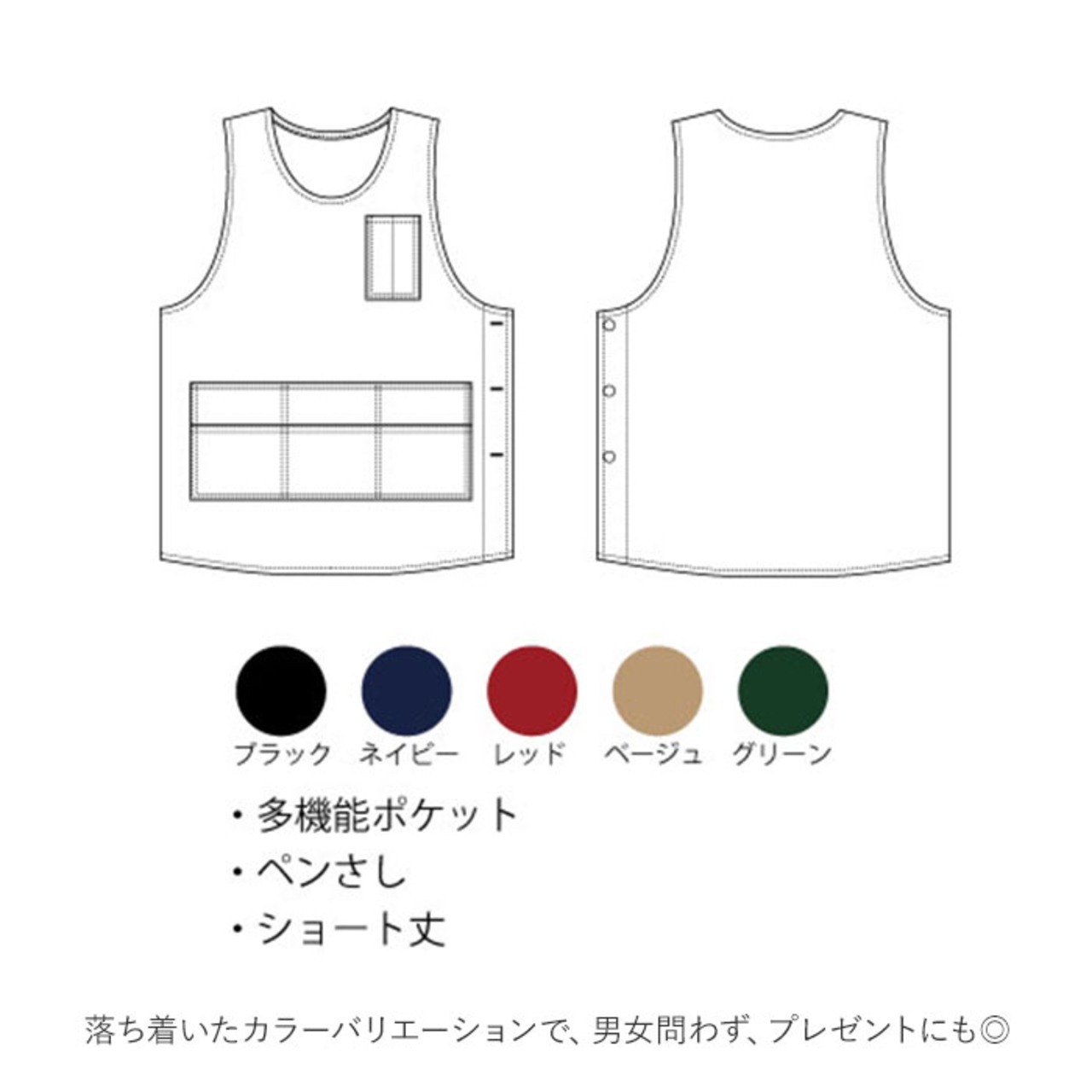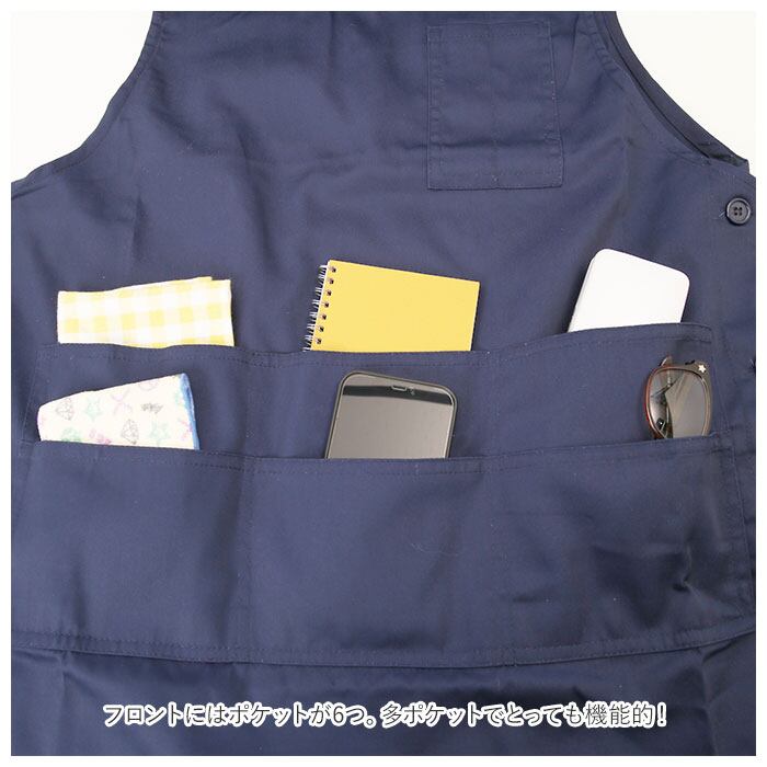 ・胸ポケットには2本入るペン差しと、フロントにはポケットが6つ。多ポケットでとっても機能的!