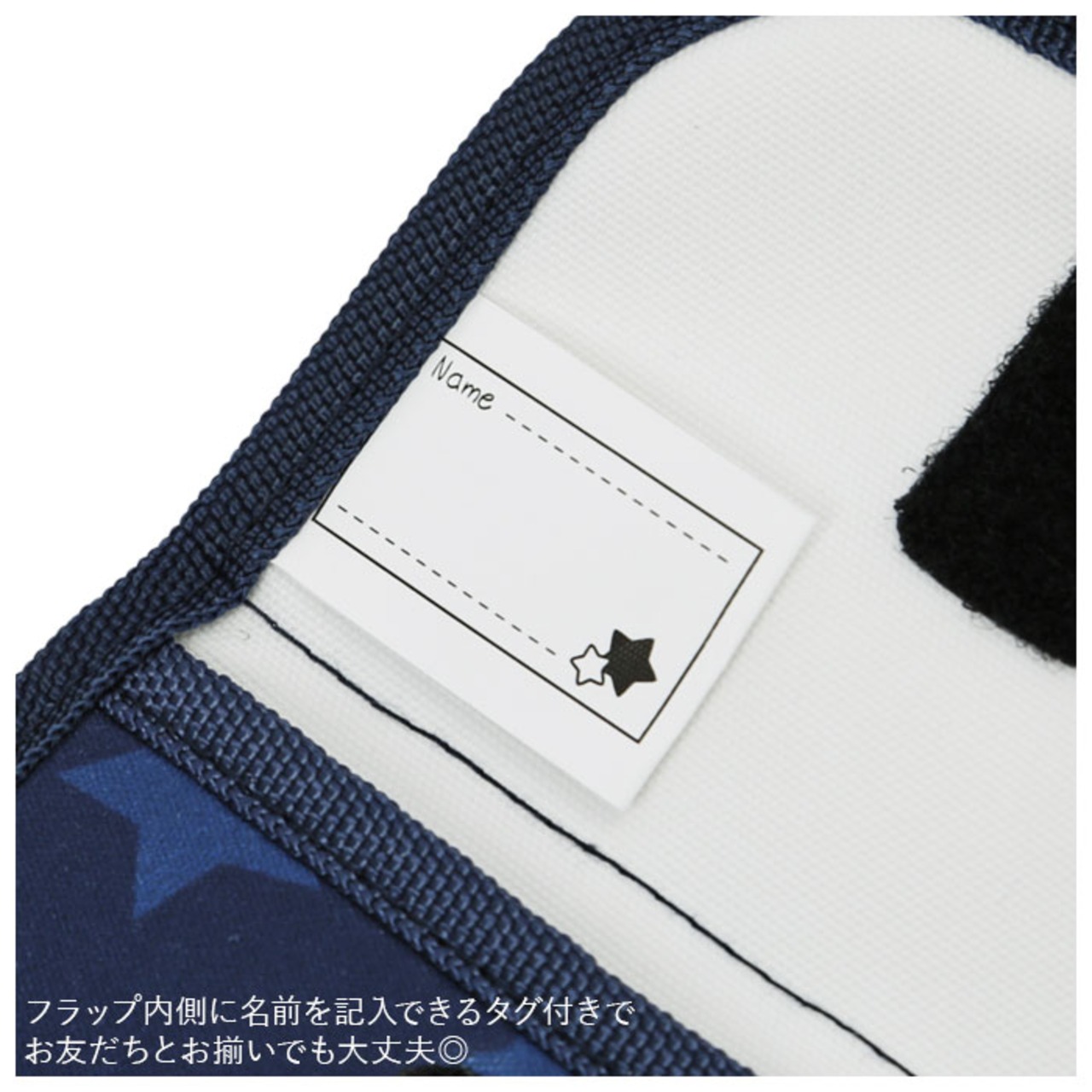 ・フラップ内側に名前を記入できるタグが付いているから、お友だちとお揃いでも大丈夫◎