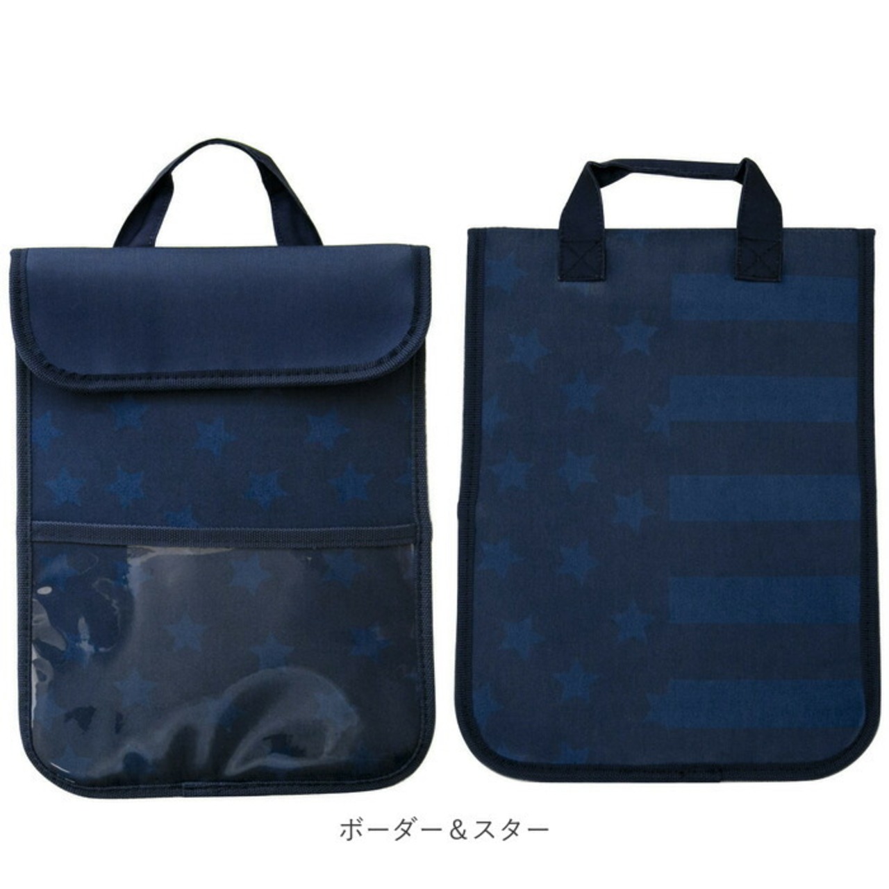 ・フロントには小物収納に便利な、透明ポケット付き。