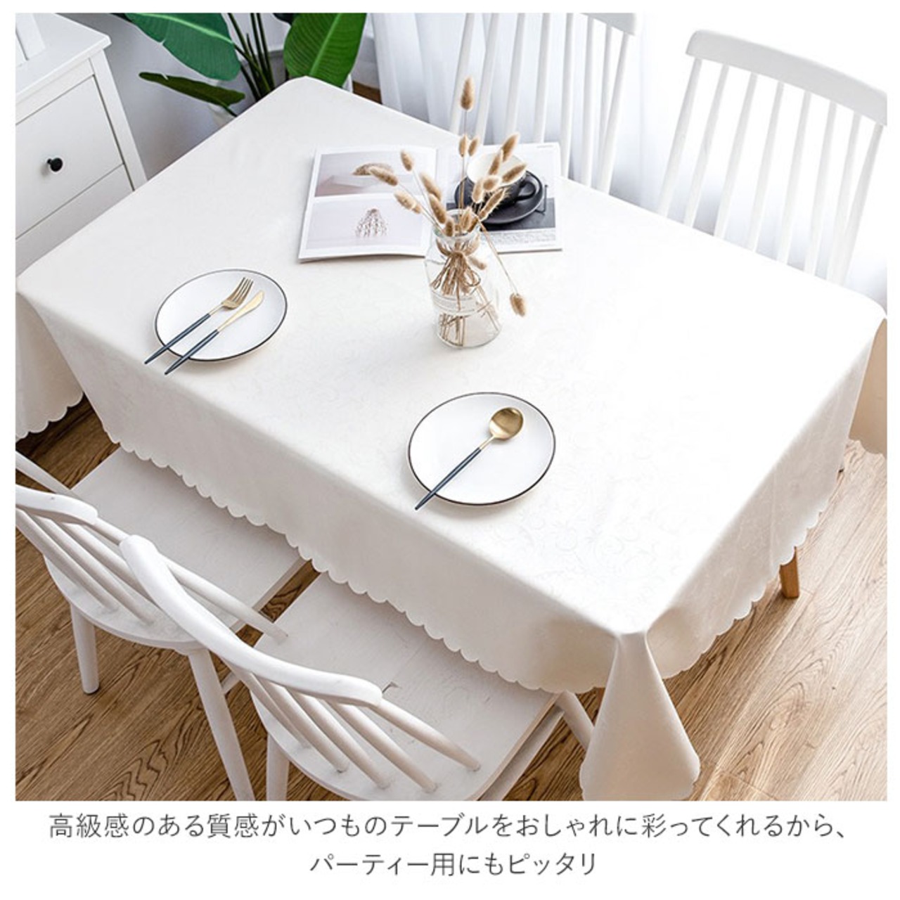 ・クロスの縁は華やかな印象を作り出すスカラップデザインがアクセントに。