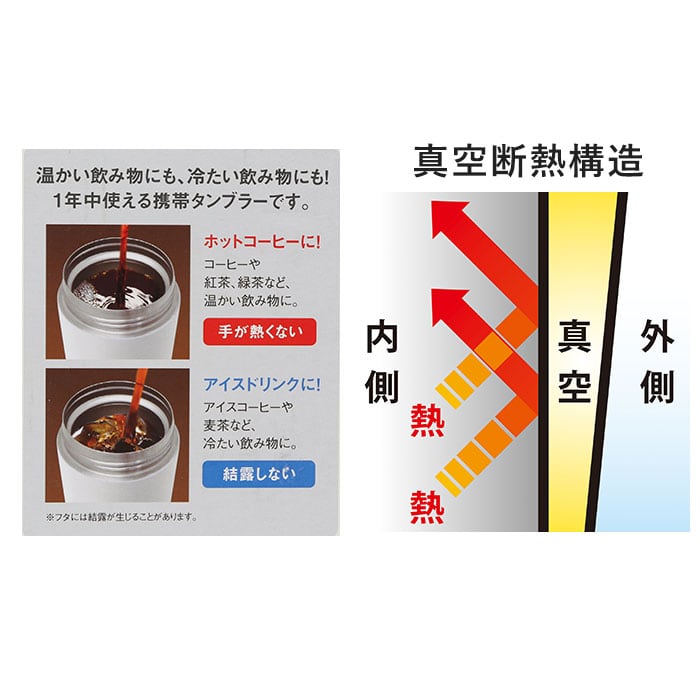 ・温かい飲み物でも手が熱くなりにくく、冷たい飲み物でも結露しないので、1年を通して便利に使える♪