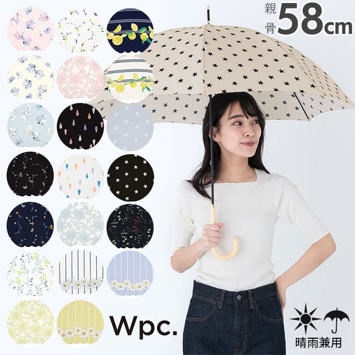wpc 傘 レディース 通販 晴雨兼用傘 長傘 晴雨兼用 8本骨 親骨 58cm 手開き UVカット 通学 通勤 ラッセルレース アイビーフラワー クリーミーフラワー ストライプマーガレット 小花 ステラ ボーダーフルーツ 水彩ドロップ ワールドパーティ