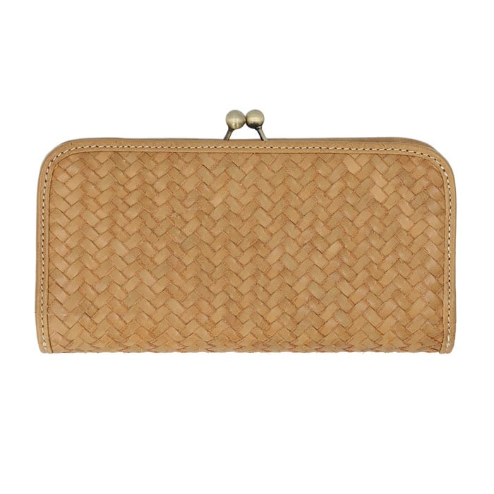 ・しなやかな手触りの本革を丁寧に編み上げ、細く裁断した本革を1本1本編み込む事で、一枚革にはないふっくらとした表情に仕上げた長財布。