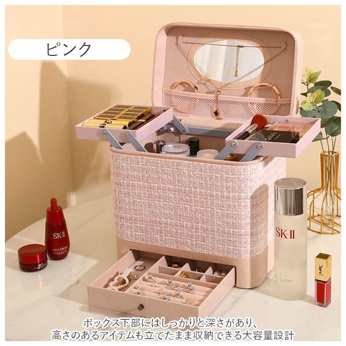 ・立体的で見やすいコスメトレイ付き♪ジュエリーもすっきりひとまとめにできるメイクボックスが新登場!