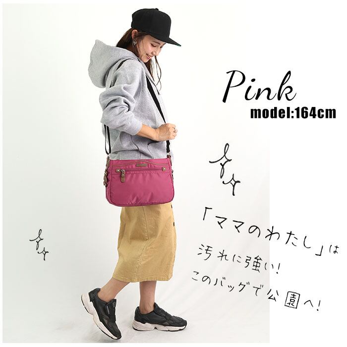 ・ナイロン素材の表生地にははっ水加工を施し、水滴からバッグを保護。シミになりにくく汚れなどが付きにくいから、雨の日でも気軽に使える。