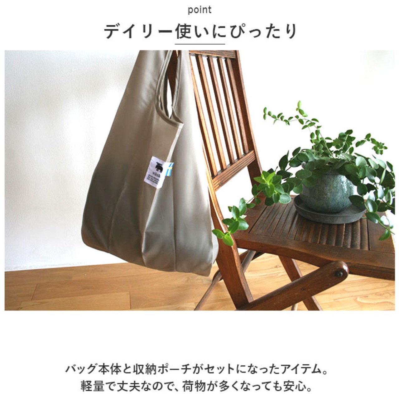 ・バッグ本体と収納ポーチがセットになったアイテム。軽量で丈夫なので、荷物が多くなっても安心。
