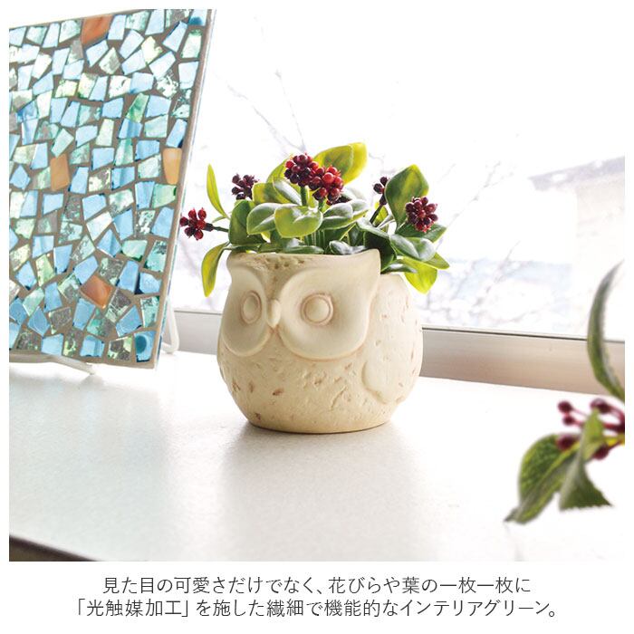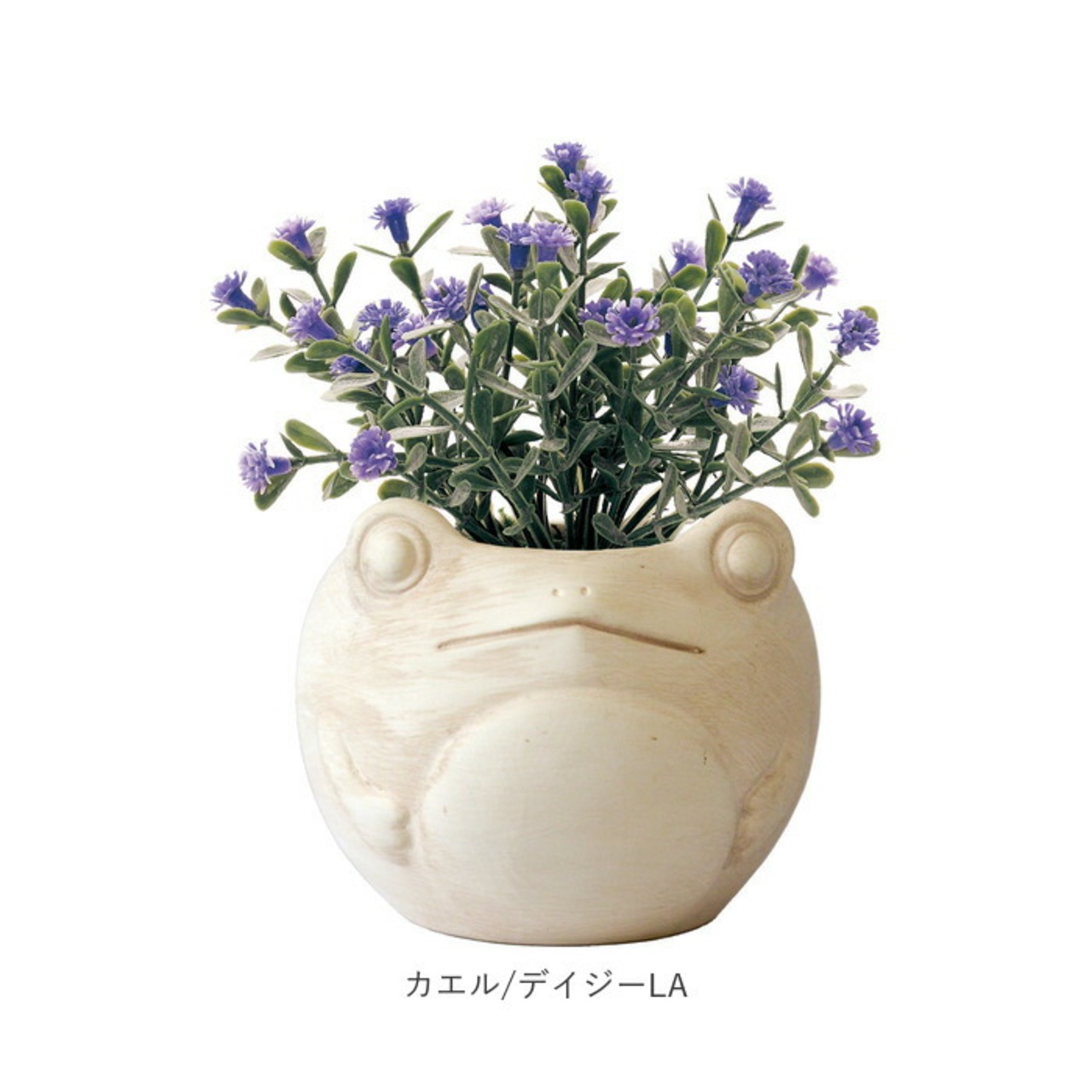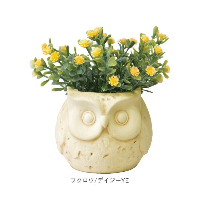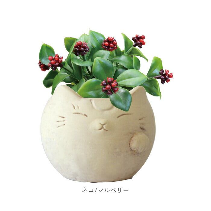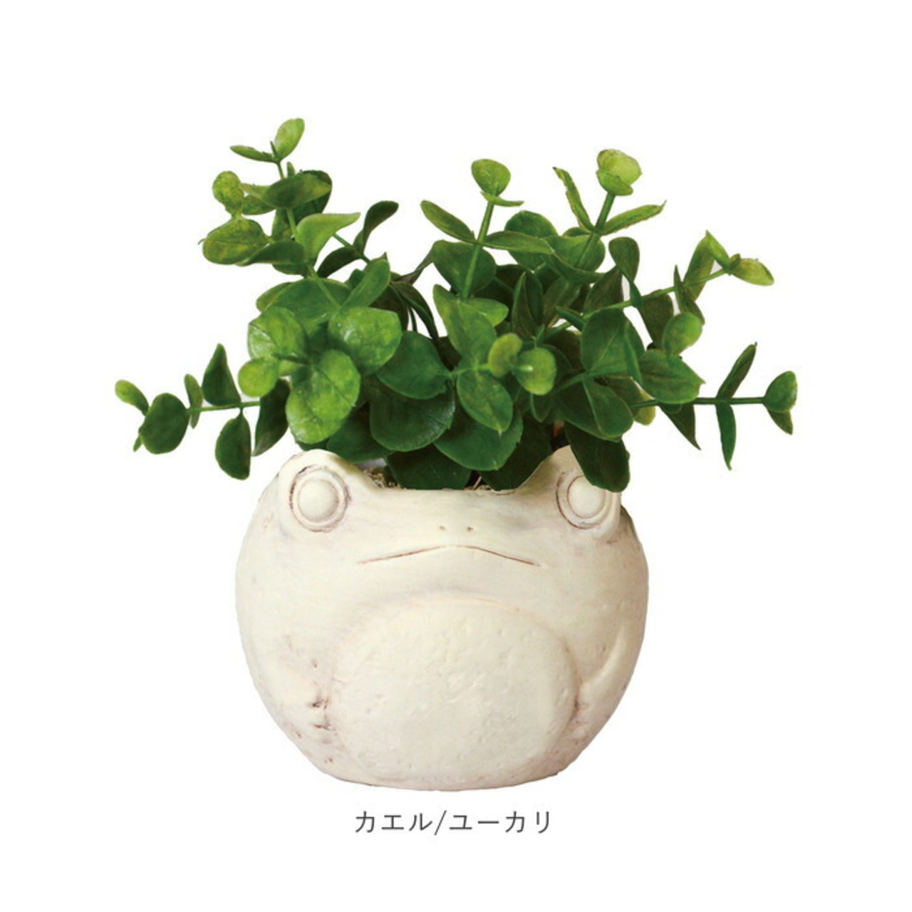 ・色とりどりのフェイクグリーンを、素材感のあるまぁるいフォルムのアニマル型ポットに丁寧にセットアップ。