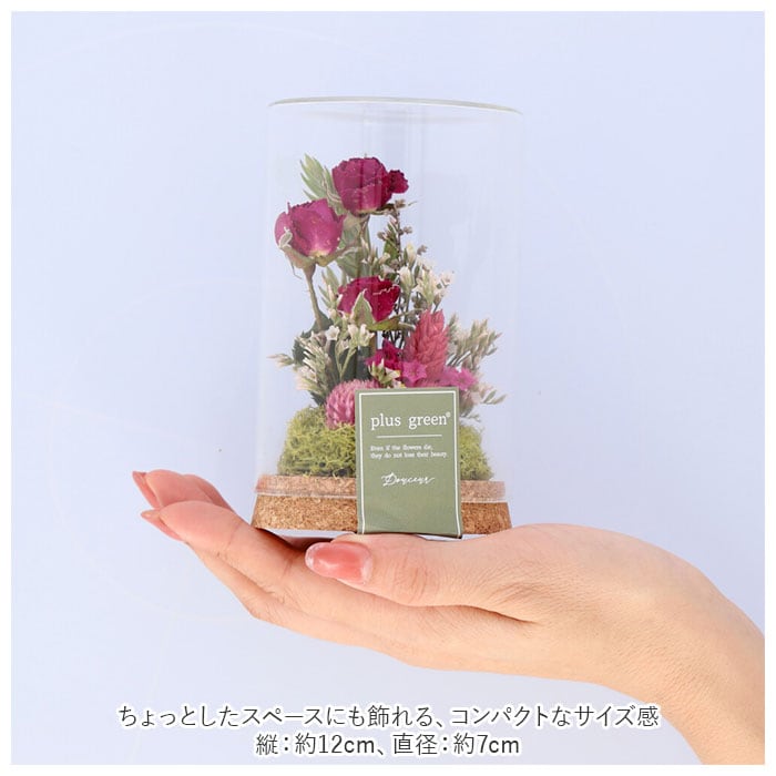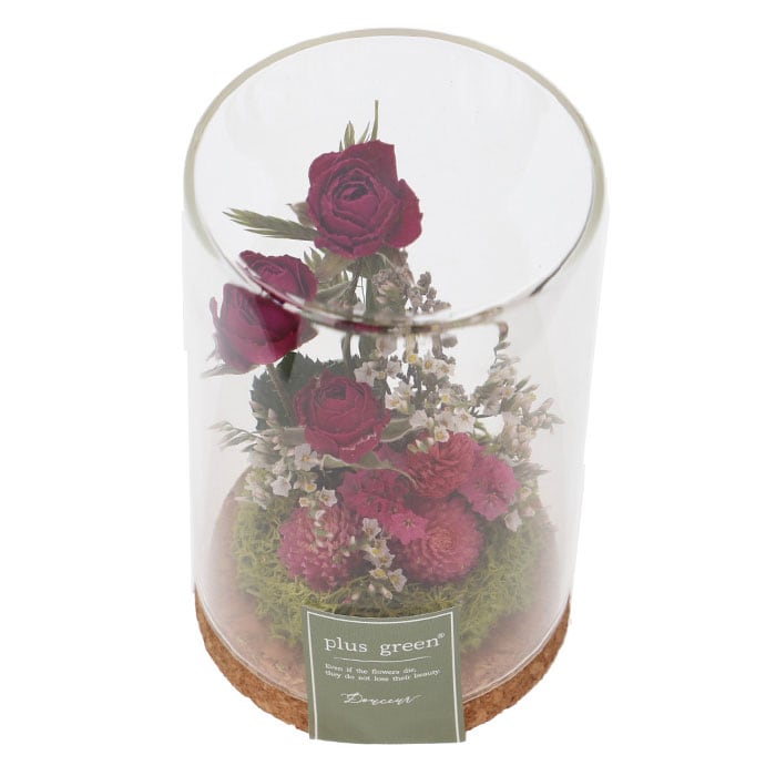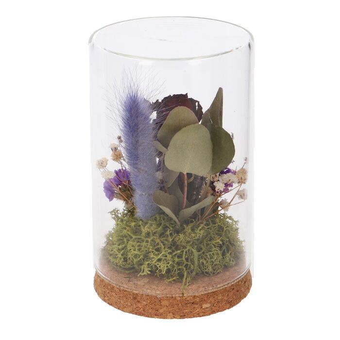・温かみのある天然コルクベースにドライフラワーを優しくアレンジし、ガラス素材をふわっと被せたコルクグラス仕様。