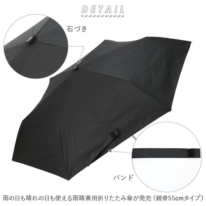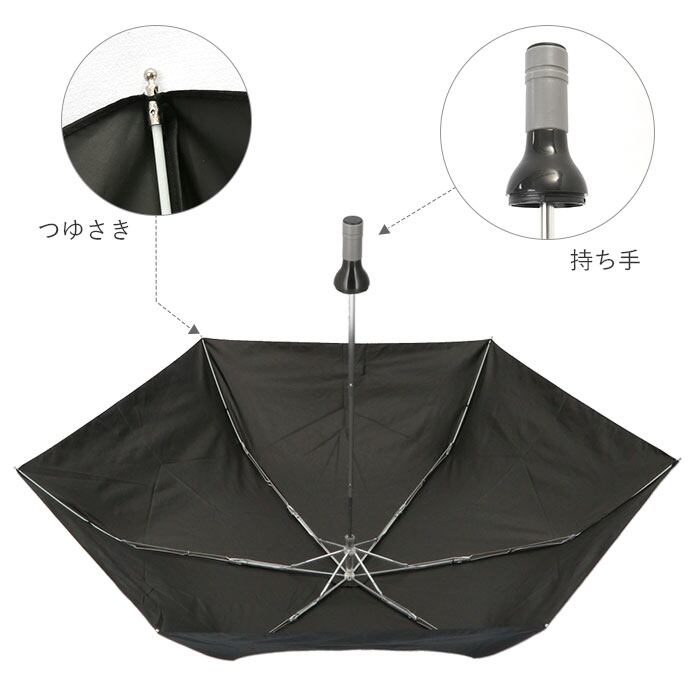 ・傘生地の内側には黒コーティング加工を施した遮光率99.5%、UPF50+、UV99%カット仕様。