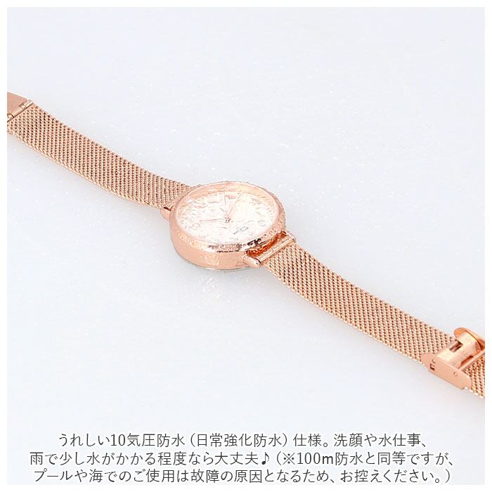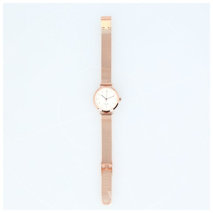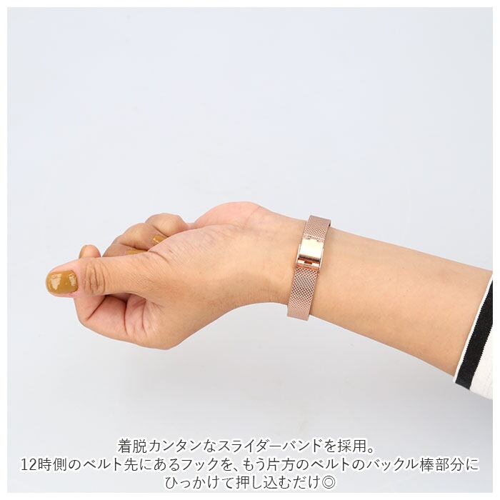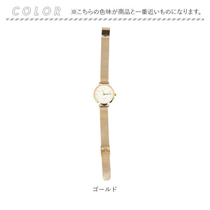 ・光沢のあるカラー使いで上品な印象を演出♪ニッケルフリーメッキ仕様のメッシュベルトウォッチ。