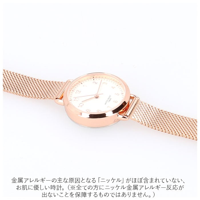 ・金属アレルギーの主な原因となる「ニッケル」がほぼ含まれていない、お肌に優しい時計。(※全ての方にニッケル金属アレルギー反応が出ないことを保障するものではありません。)