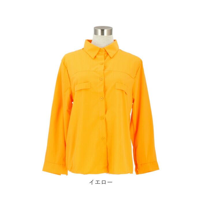 シャツ レディース おしゃれ 通販 長袖 白 春 ロング 白シャツ カラーシャツ イエロー ブルー 無地 ブラウス 薄手 カジュアル ベーシック レイヤード トップス