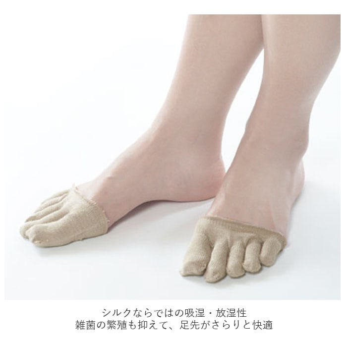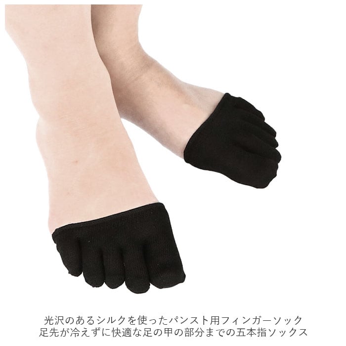 5本指ソックス 靴下 レディース 通販 指先ソックス 5本指靴下 絹 シルク コクーンフィット cocoonfit 国産 つま先ソックス つま先カバー 指先 ゆび先 つま先 爪先 5本指 ソックス パンスト用 インナーソックス クロ 黒 ブラック ベージュ パンスト用フィンガーソック