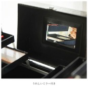 ・ボックスのフタ裏には、便利なミラー付き。一人暮らしの部屋でも、このコスメボックスを広げればどこでもドレッサーに早変わり!