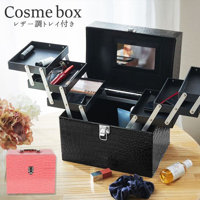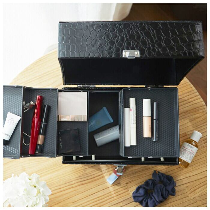 レザー調トレイ付きコスメボックス