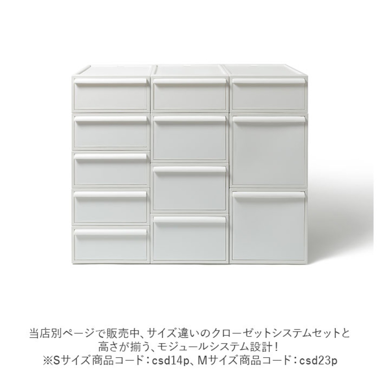 ・当店別ページで販売中、サイズ違いのクローゼットシステムセットと高さが揃う、モジュールシステム設計!魅せる収納が簡単に実現。(※Sサイズ商品コード:csd14p、Mサイズ商品コード:csd23p)