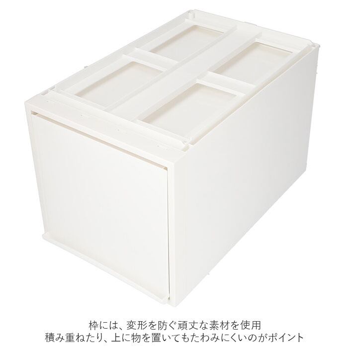 ・枠には、変形を防ぐ頑丈な素材を使用。積み重ねたり、上に物を置いてもたわみにくいのがポイント。