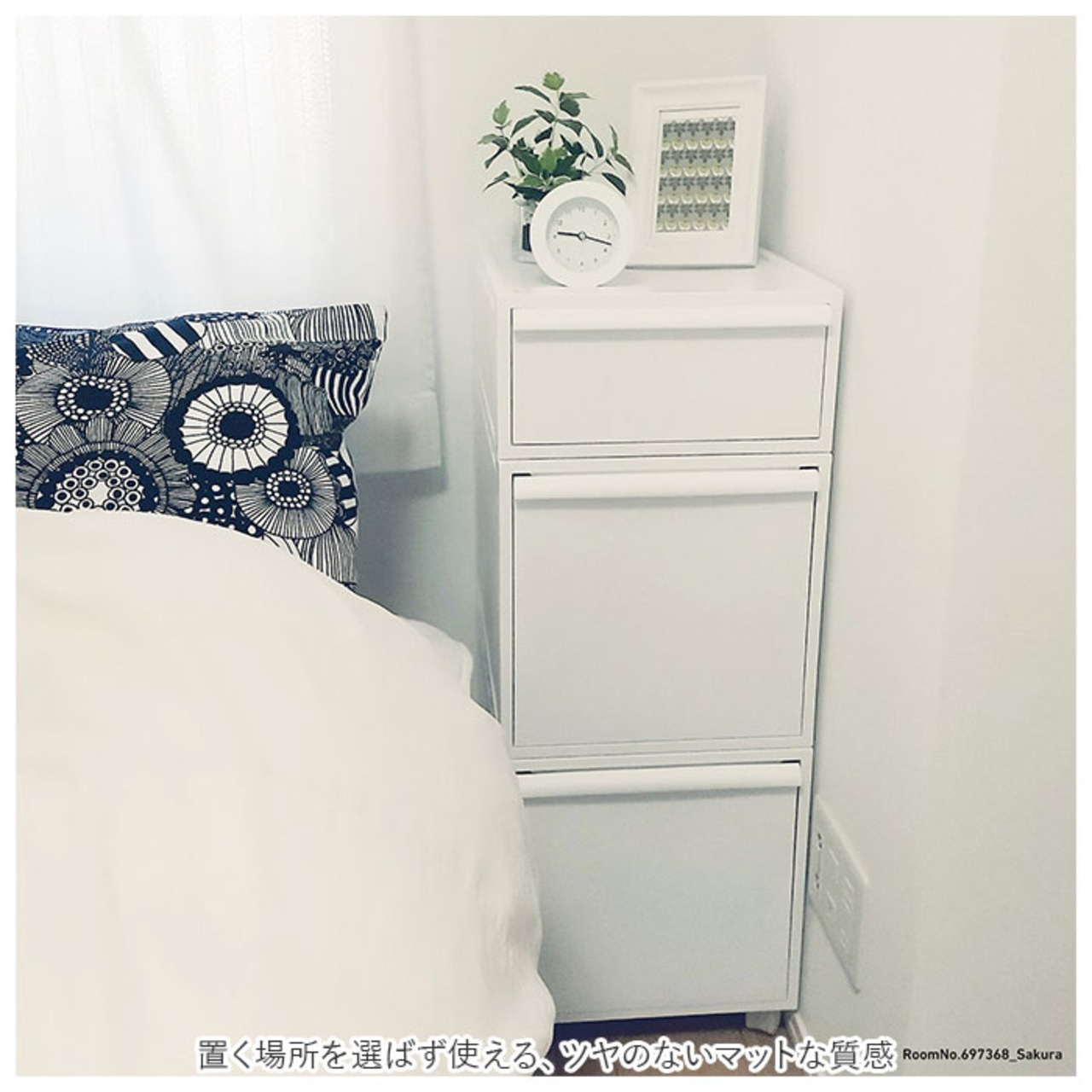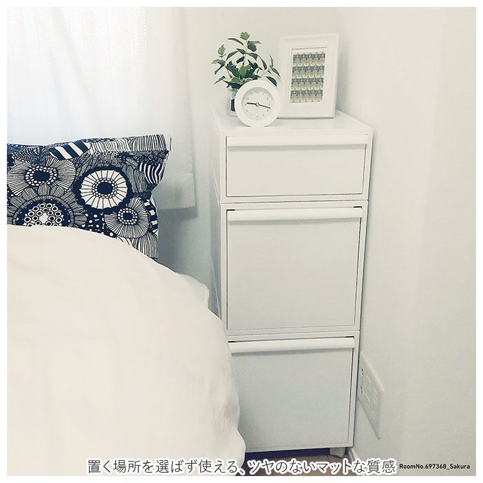 ・置く場所を選ばず使える、ツヤのないマットな質感。中身が見えることなく、生活感を隠せる不透明カラー。