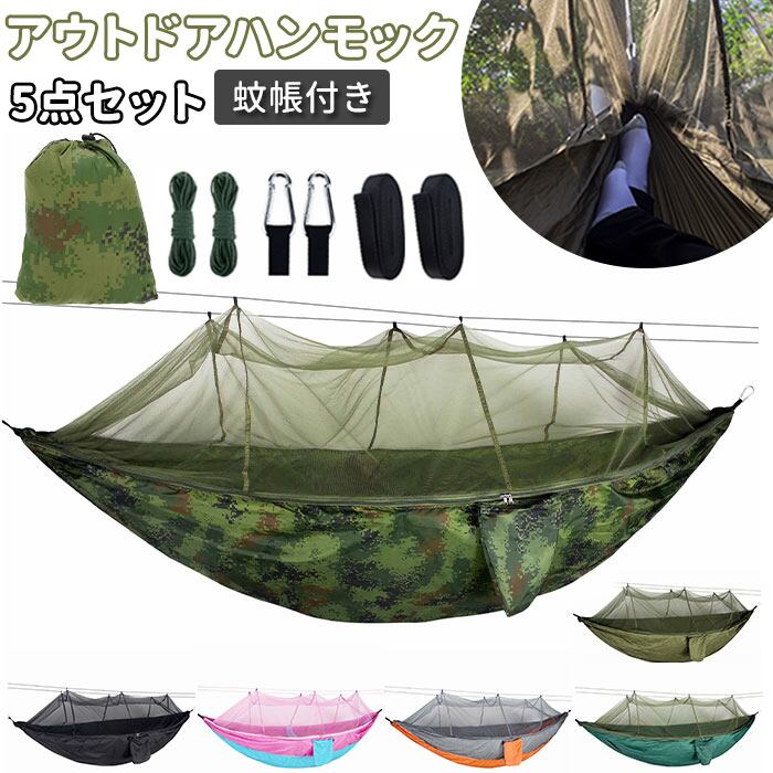 ・キャンプなどアウトドアで大活躍♪女性一人でも組み立てができる「アウトドアハンモック5点セット dc008h」が登場。
