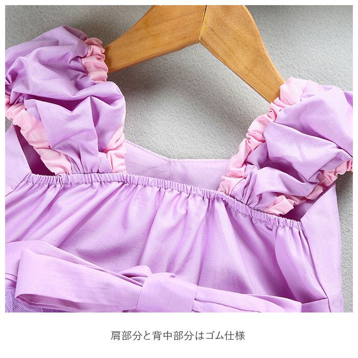 ・フリルたっぷりのチュールレースがふわっふわに揺れて可愛さ120%!柔らかいラベンダーカラーと上身頃のアクセントはあのプリンセスみたい…?