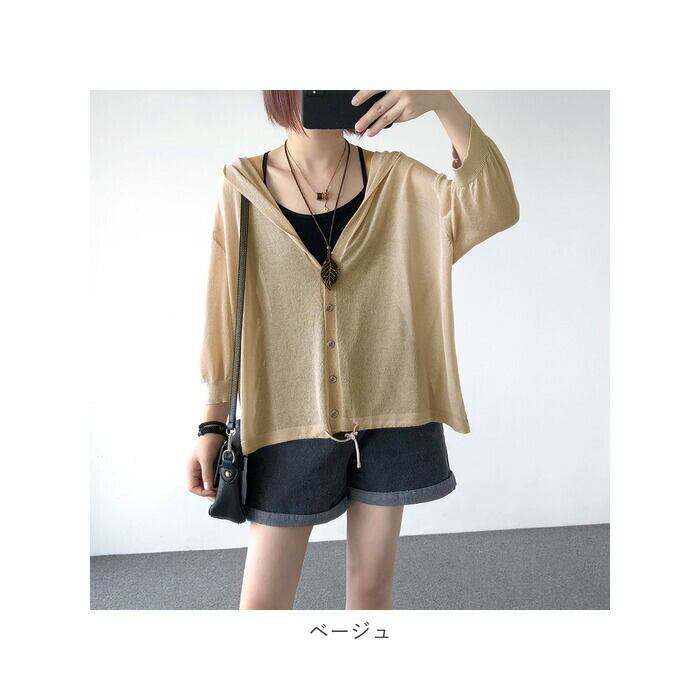 サマーニット カーディガン 通販 レディース 薄手 夏用 大きい 麻 リネン uv きれいめ 春夏 かわいい 7分袖 羽織り フード カジュアル おしゃれ 服 トップス