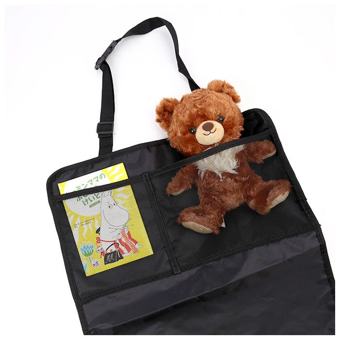 ・キックガード上部には、中身が見える2つのメッシュポケット付き。車の中で散らかりやすいお子さまのオモチャやお菓子、ティッシュボックスなどがスッキリ整理できる!