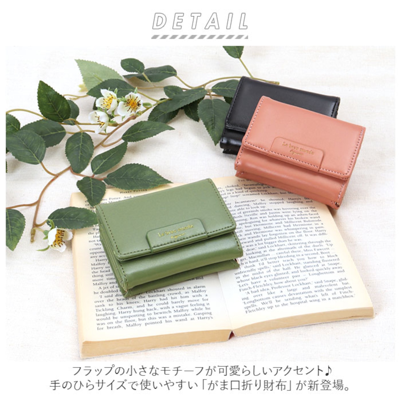 ・フラップの小さなモチーフが可愛らしいアクセント♪手のひらサイズで使いやすい「がま口折り財布」が新登場。