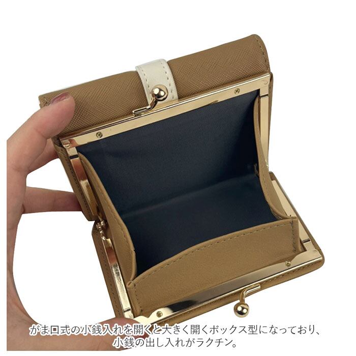 ・がま口式の小銭入れを開くと大きく開くボックス型になっており、小銭の出し入れがラクチン。