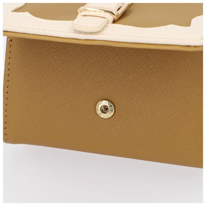 ・表面にフェイクレザー素材を使用。ゴールドの金具使いで上品な雰囲気をプラス。(※デザインにより、質感が異なります。)