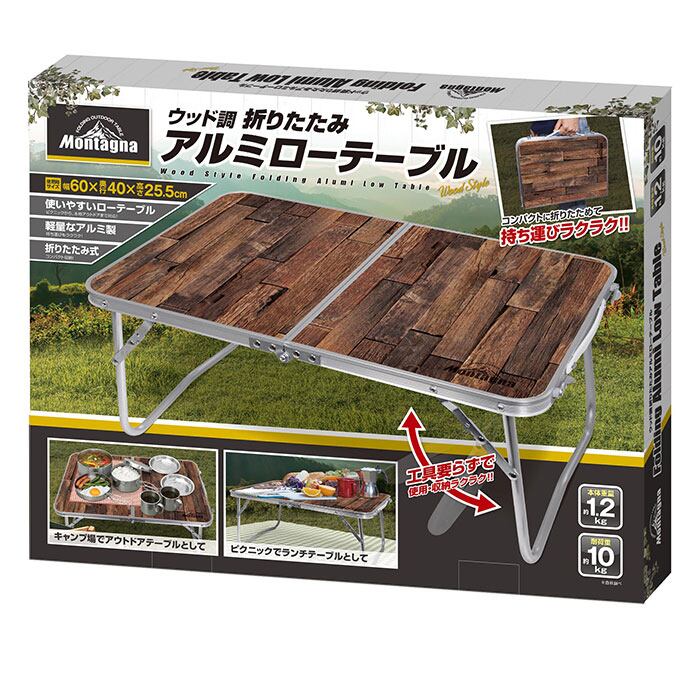 Montagna モンターナ 折りたたみ ローテーブル 通販 アルミ 折り畳み テーブル 机 軽量 使いやすい コンパクト 持ち運び 二つ折り レジャー アウトドア キャンプ 屋外 ピクニック おしゃれ