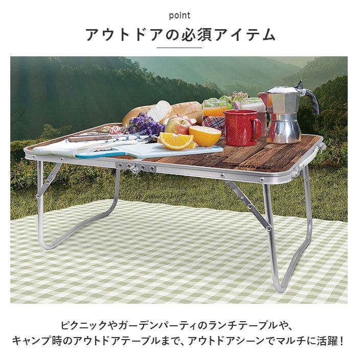 ・ピクニックやガーデンパーティのランチテーブルや、キャンプ時のアウトドアテーブルまで、アウトドアシーンでマルチに活躍!