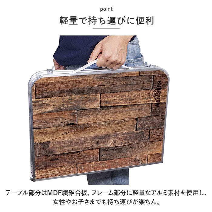 ・テーブル部分はMDF繊維合板、フレーム部分に軽量なアルミ素材を使用し、女性やお子さまでも持ち運びが楽ちん。