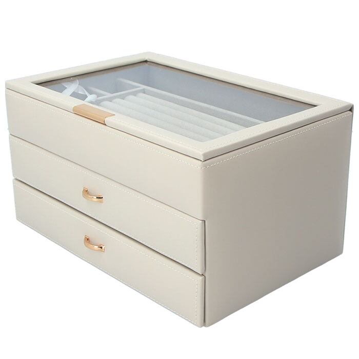 ・グレーのトーンで統一された大容量の2段引き出しジュエリーボックスが登場。