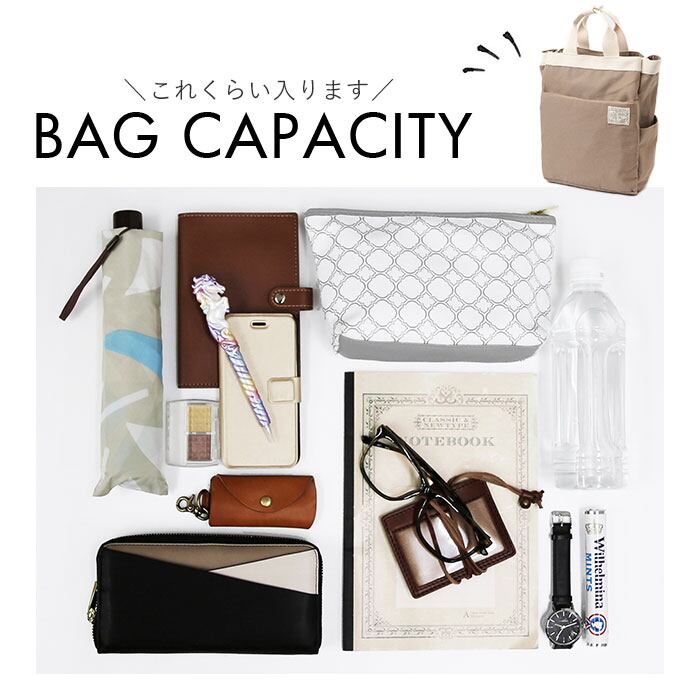 ・天面ファスナーで中身が見えずに安心◎また両あおり仕様だから、折りたたみ傘やペットボトルなど細長いものも収納しやすく取り出しやすい◎
