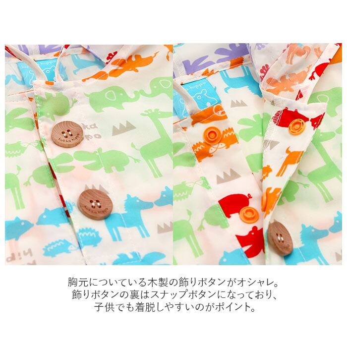 ・飾りボタンの裏はスナップボタンになっており、子供でも着脱しやすいのがポイント。