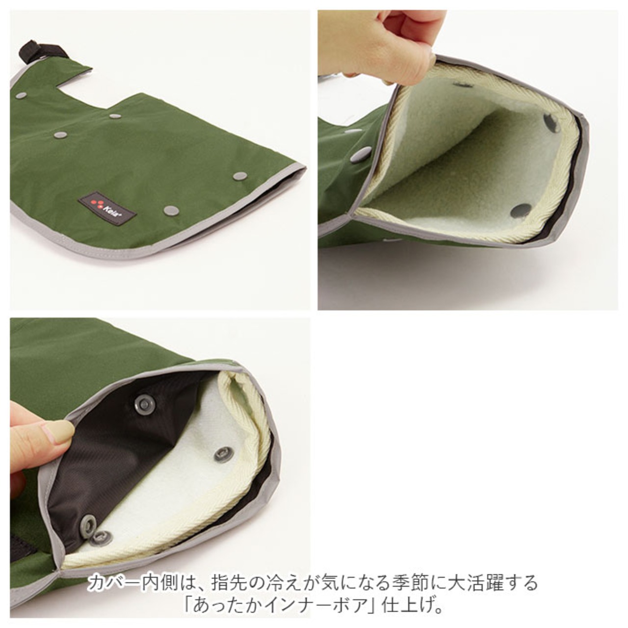 ・カバー内側は、指先の冷えが気になる季節に大活躍する「あったかインナーボア」仕上げ。