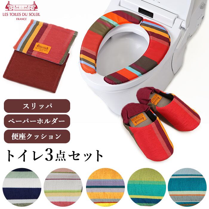 トイレ3点セット おしゃれ 通販 トイレスリッパ ペーパーホルダー 便座クッション 厚手 便座シート インテリア トイレファブリック 新築祝い ギフト お手入れ簡単 フリーサイズ 単品 o型 u型 ストライプ 便座クッション フランス ブランド レトワール