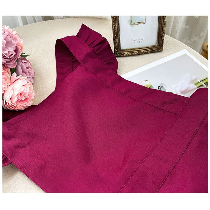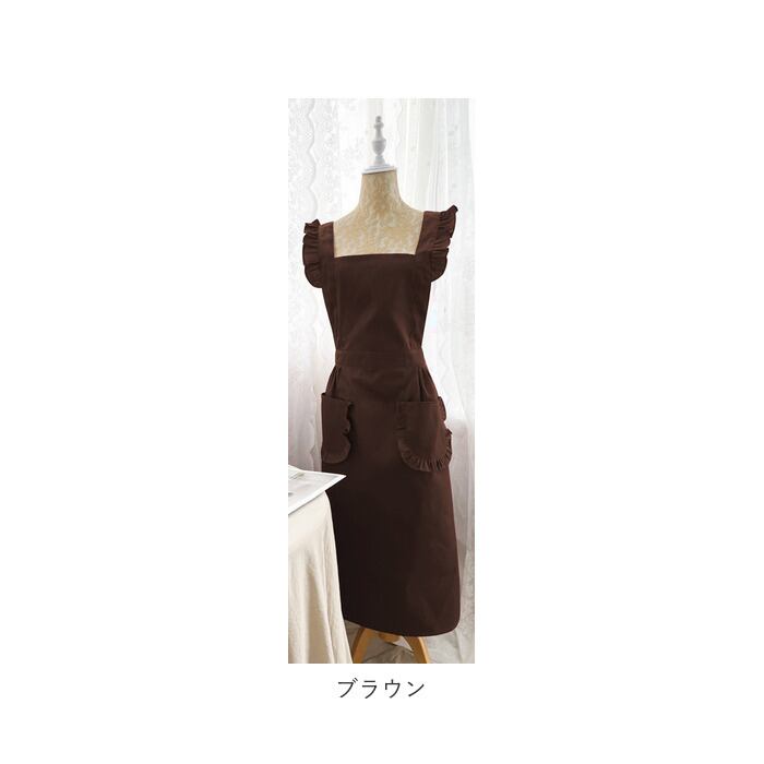 ・肩紐とポケット部分にフリルがあるので、シンプルながらも可愛さがあるデザイン♪ワンピース風で女性らしさを演出!