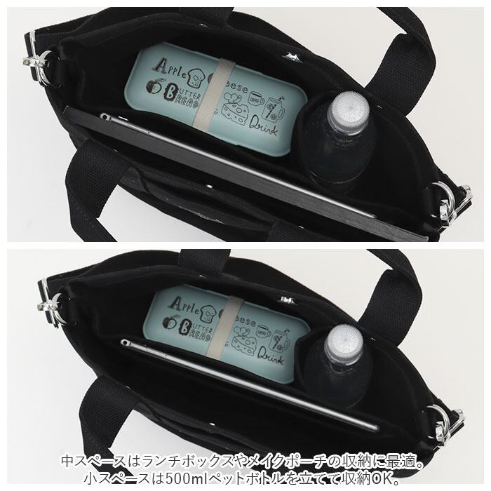 ・中スペースはランチボックスやメイクポーチの収納に最適。