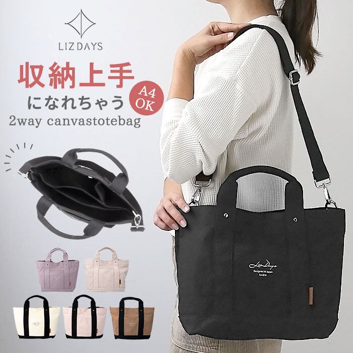 LIZDAYS 仕切り付き 2WAY キャンバストートバッグ