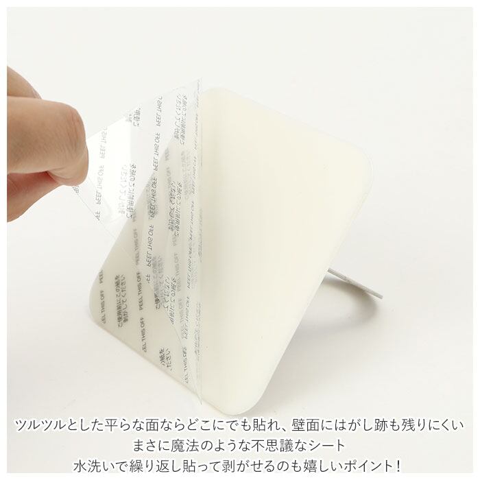 ・ツルツルとした平らな面ならどこにでも貼れ、壁面にはがし跡も残りにくい、まさに魔法のような不思議なシート。水洗いで繰り返し貼って剥がせるのも嬉しいポイント!