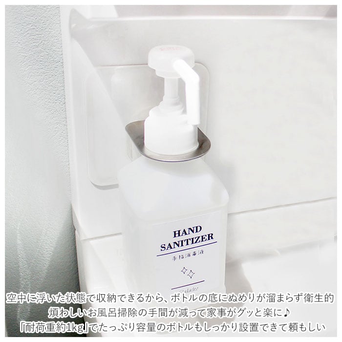 ・空中に浮いた状態で収納できるから、ボトルの底にぬめりが溜まらず衛生的。煩わしいお風呂掃除の手間が減って家事がグッと楽に。