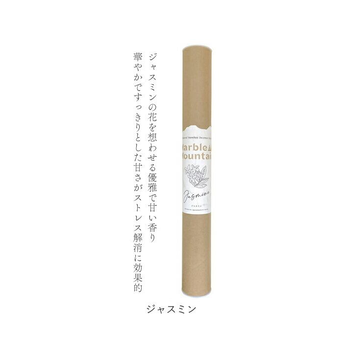 ・無着色でナチュラルに香り立つアロマ素材を、細い竹材を使ってスティック状に仕上げたバンブータイプのインセンス。