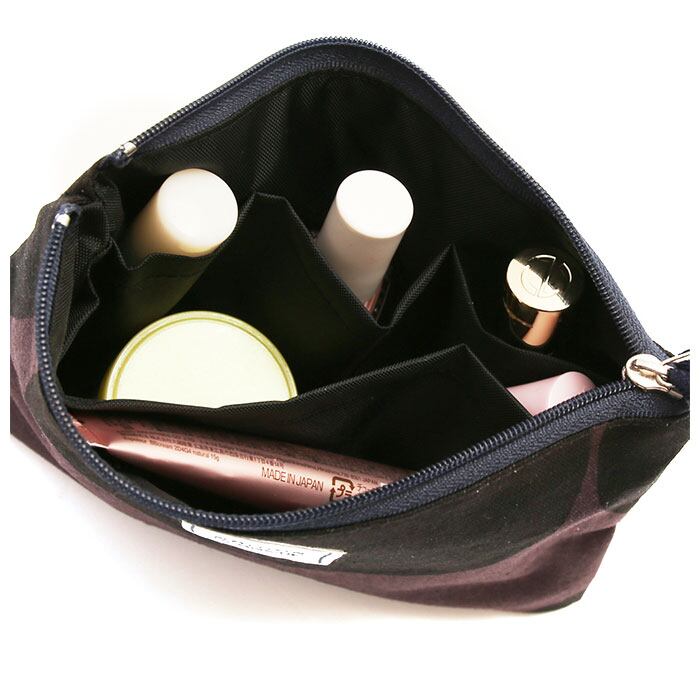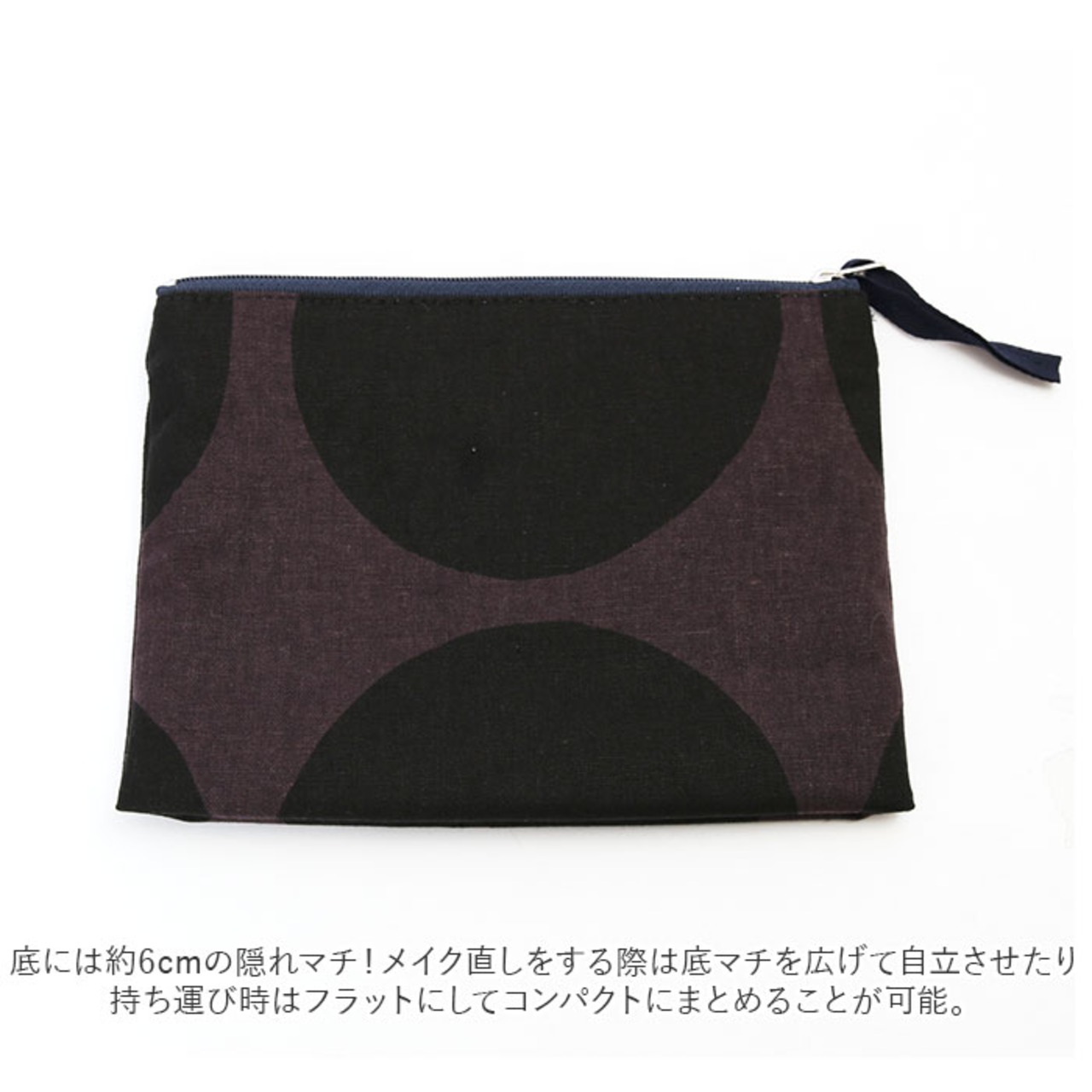 ・底には約6cmの隠れマチ!メイク直しをする際は底マチを広げて自立させたり、持ち運び時はフラットにしてコンパクトにまとめることが可能。