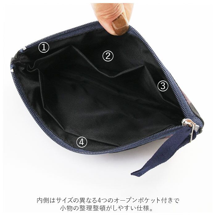 ・内側はサイズの異なる4つのオープンポケット付きで、小物の整理整頓がしやすい仕様。